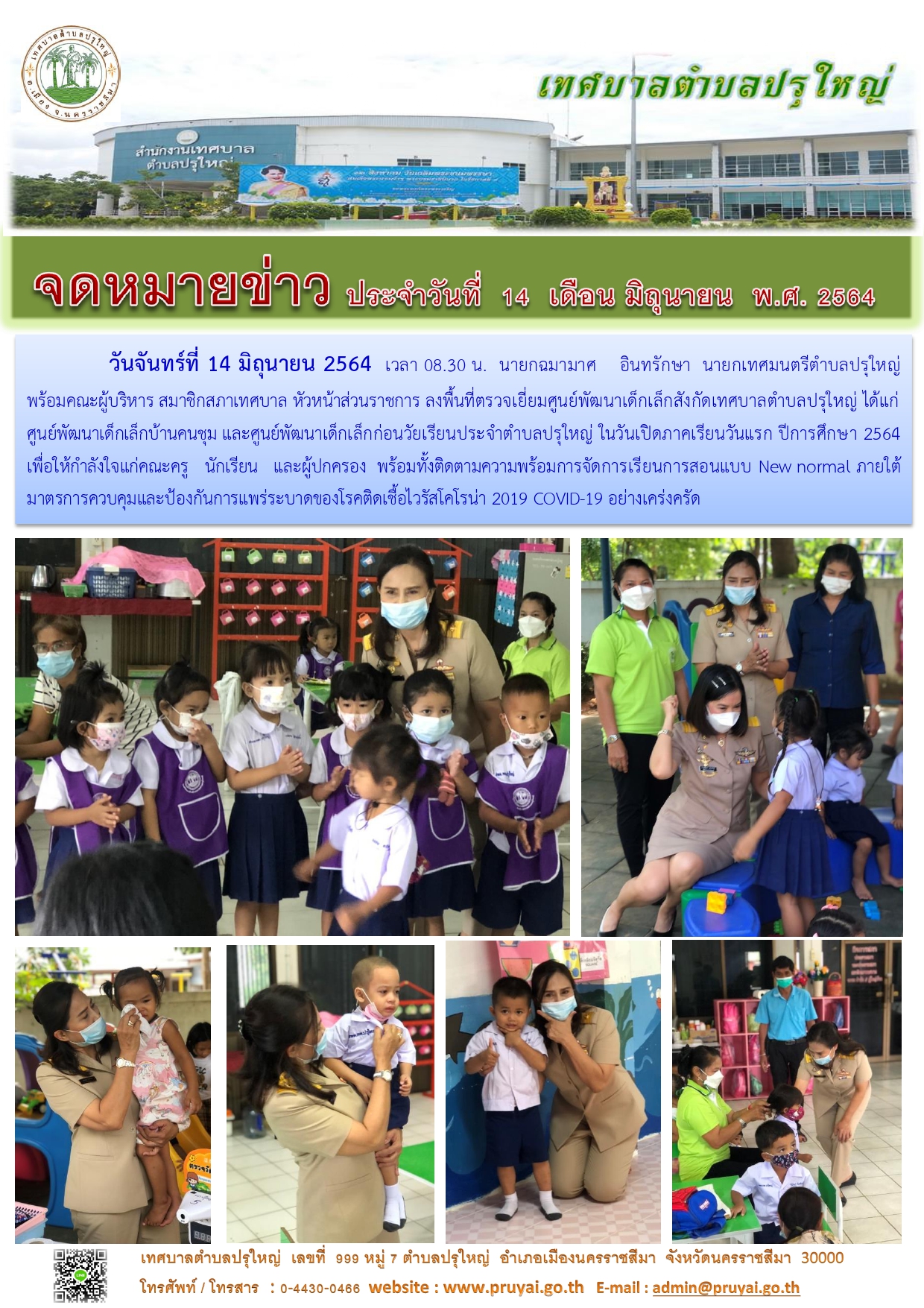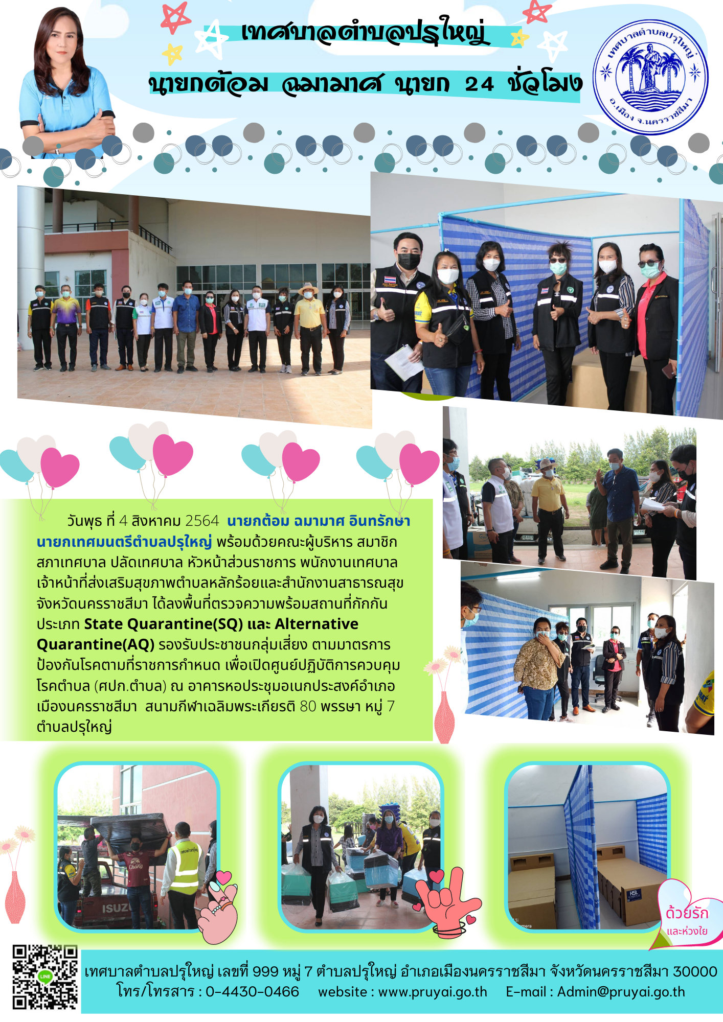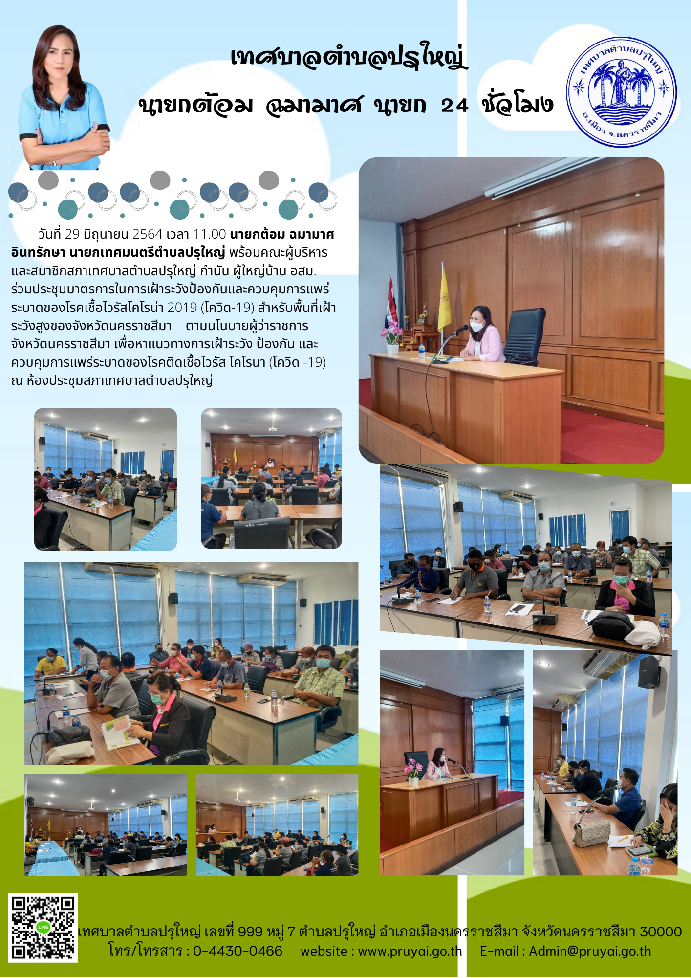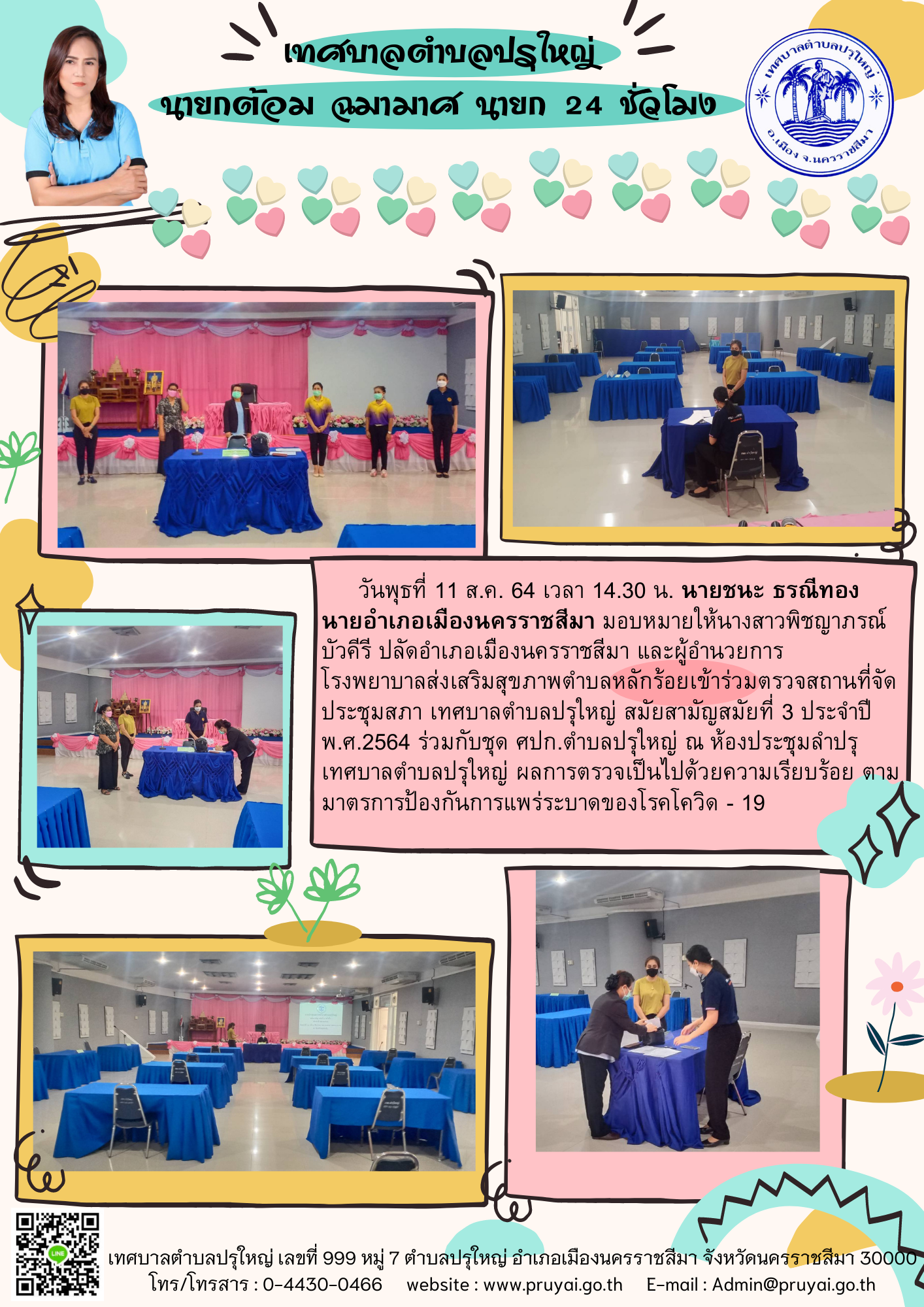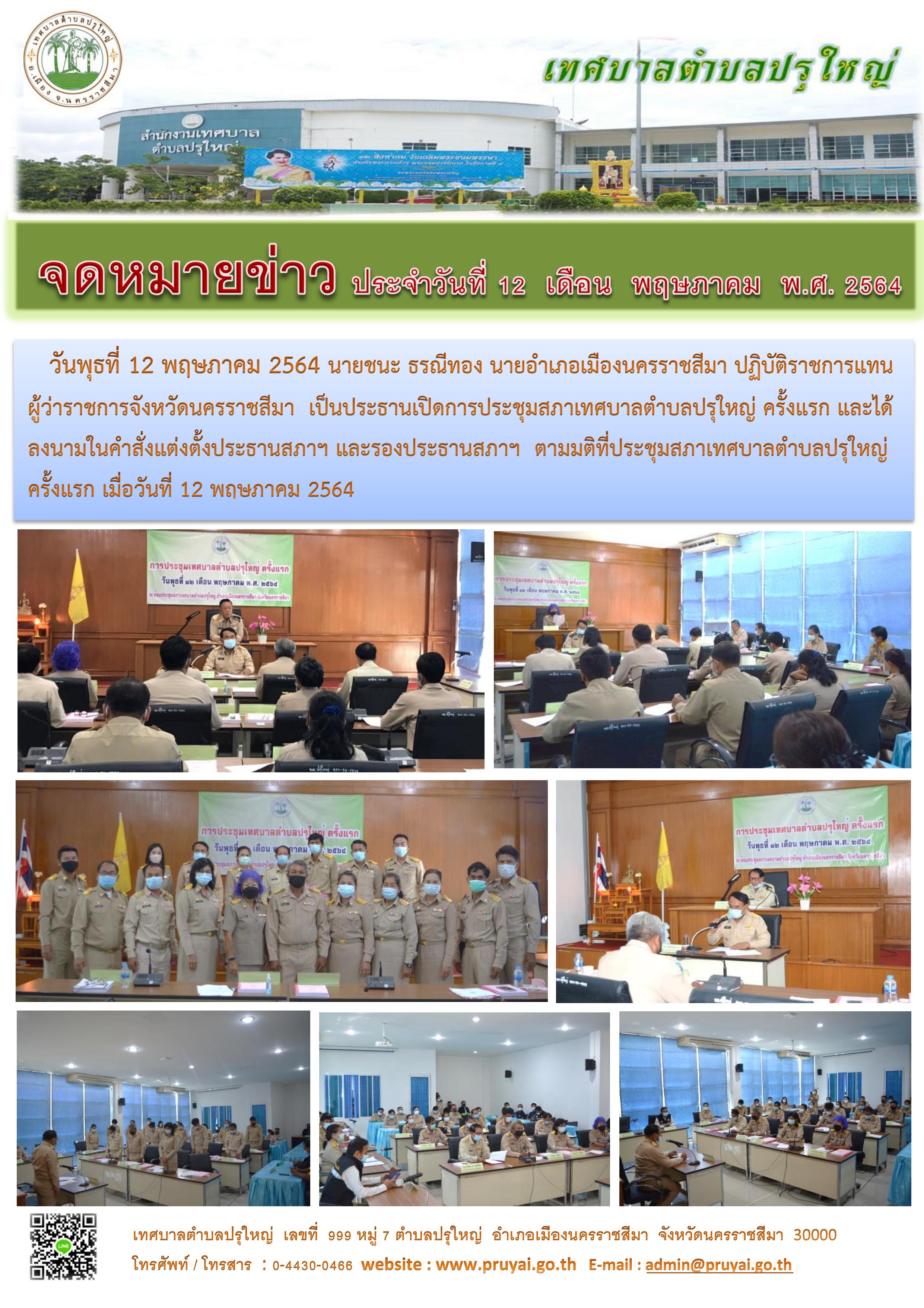 อำเภอเมืองนครราชสีมาและโรงพยาบาล ส่งเสริมสุขภาพ ตำบลหลักร้อย ตรวจสถานที่จัดประชุมสภาเทศบาล ตำบลปรุใหญ่ สมัยสามัญ สมัยที่ 3 ครั้งที่ 1 ประจำปี พ.ศ. 2564 ร่วมกับชุด ศปก.ตำบลปรุใหญ่