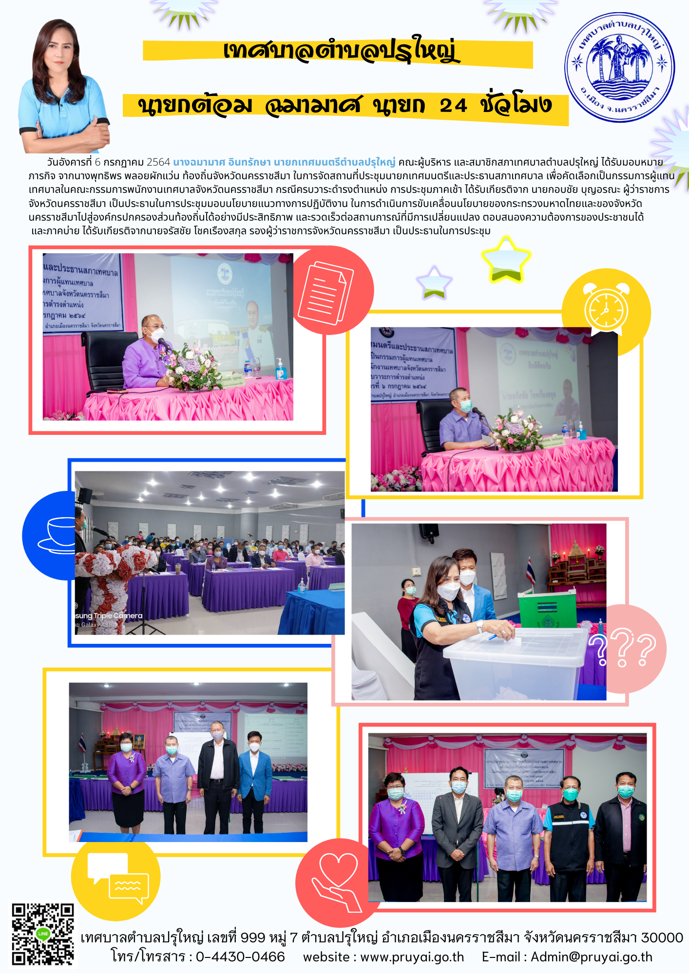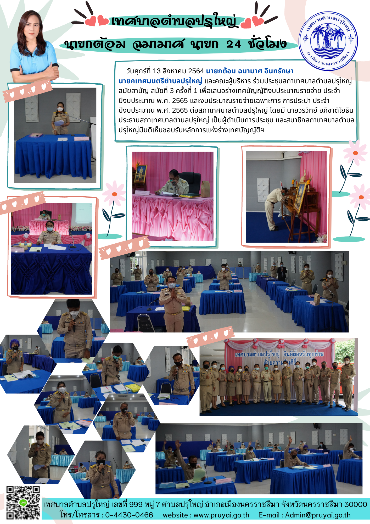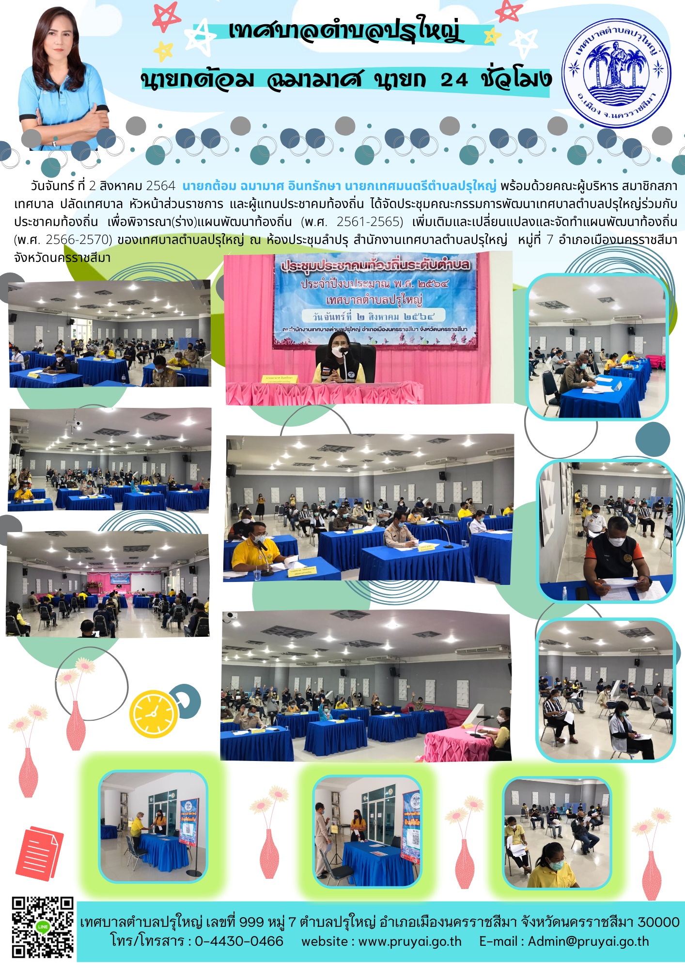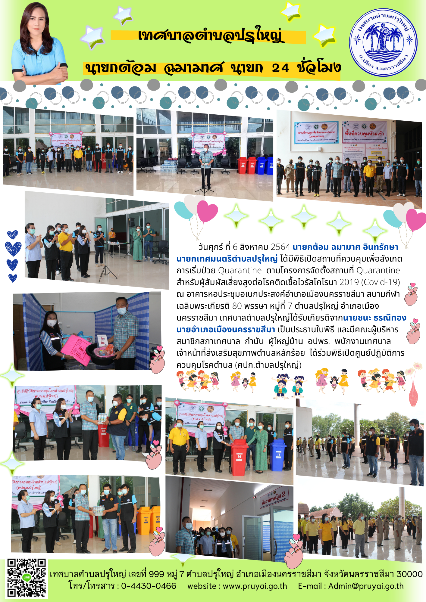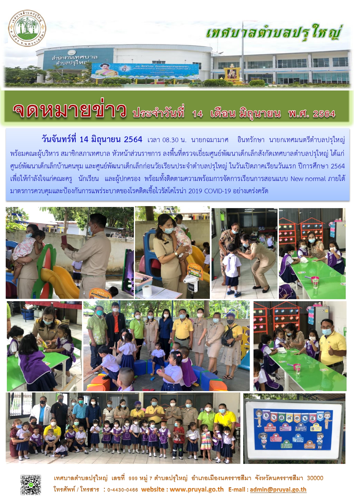 อำเภอเมืองนครราชสีมาและโรงพยาบาล ส่งเสริมสุขภาพ ตำบลหลักร้อย ตรวจสถานที่จัดประชุมสภาเทศบาล ตำบลปรุใหญ่ สมัยสามัญ สมัยที่ 3 ครั้งที่ 1 ประจำปี พ.ศ. 2564 ร่วมกับชุด ศปก.ตำบลปรุใหญ่