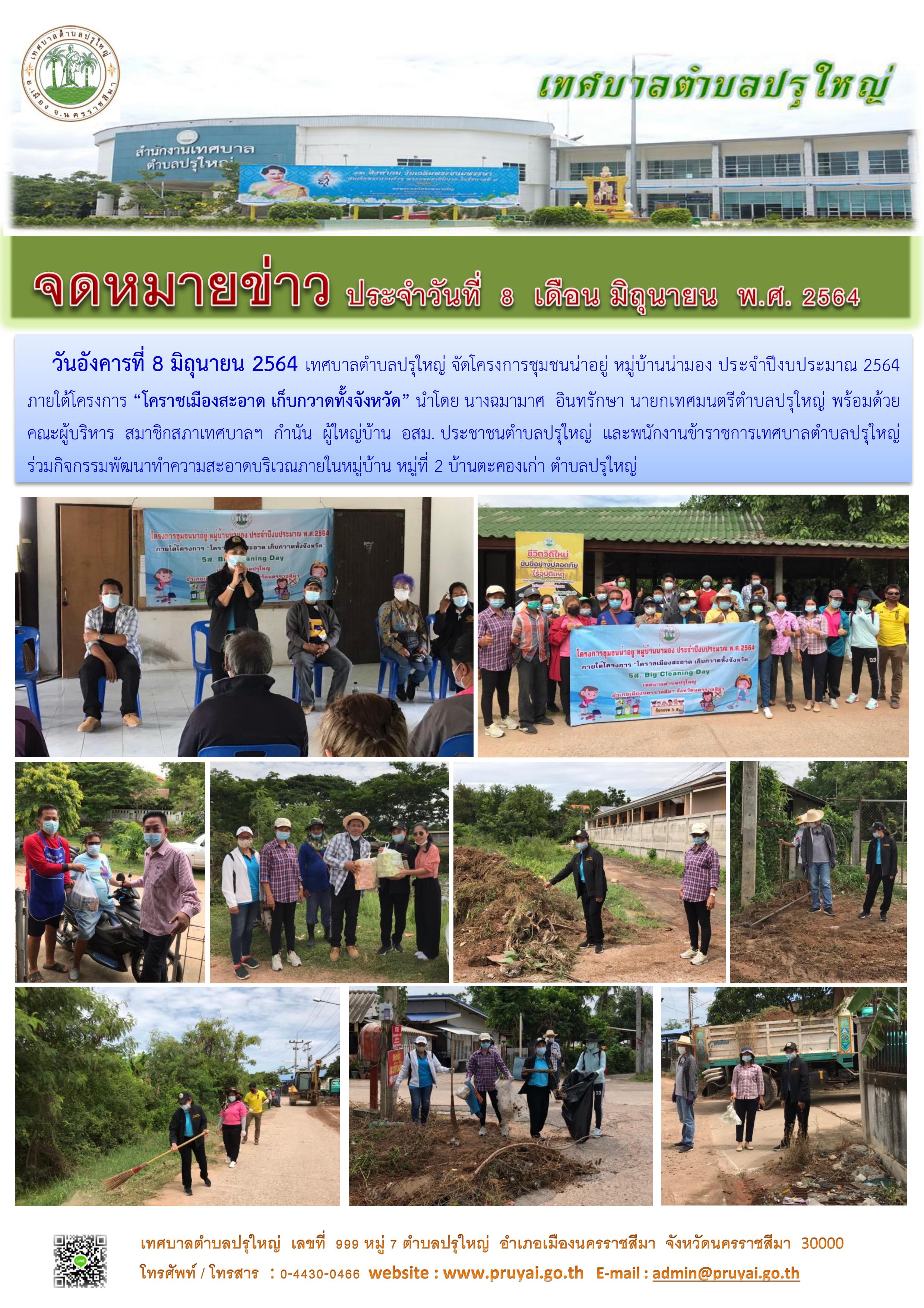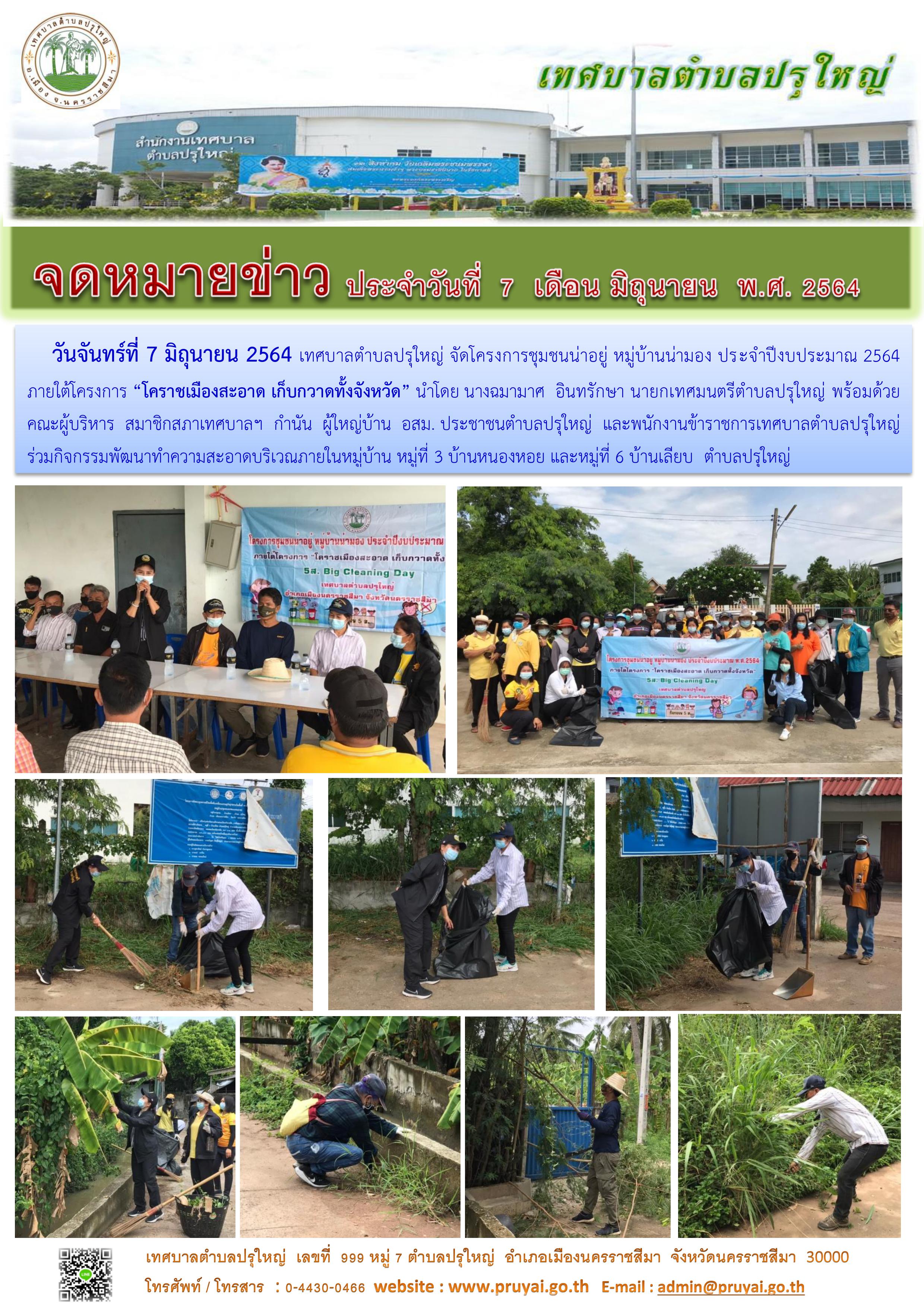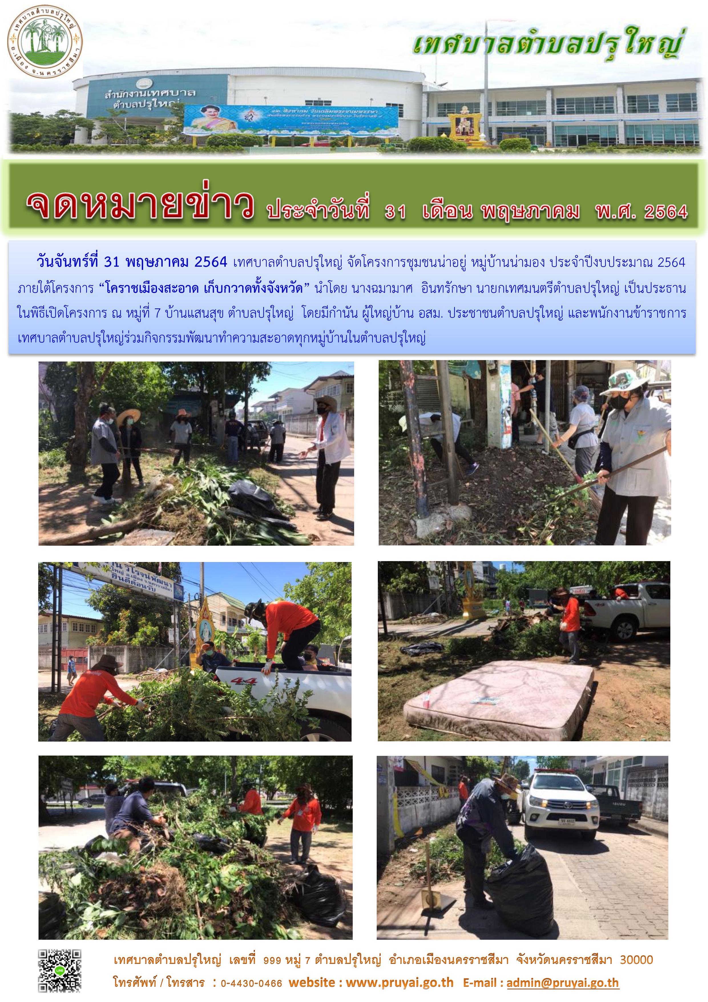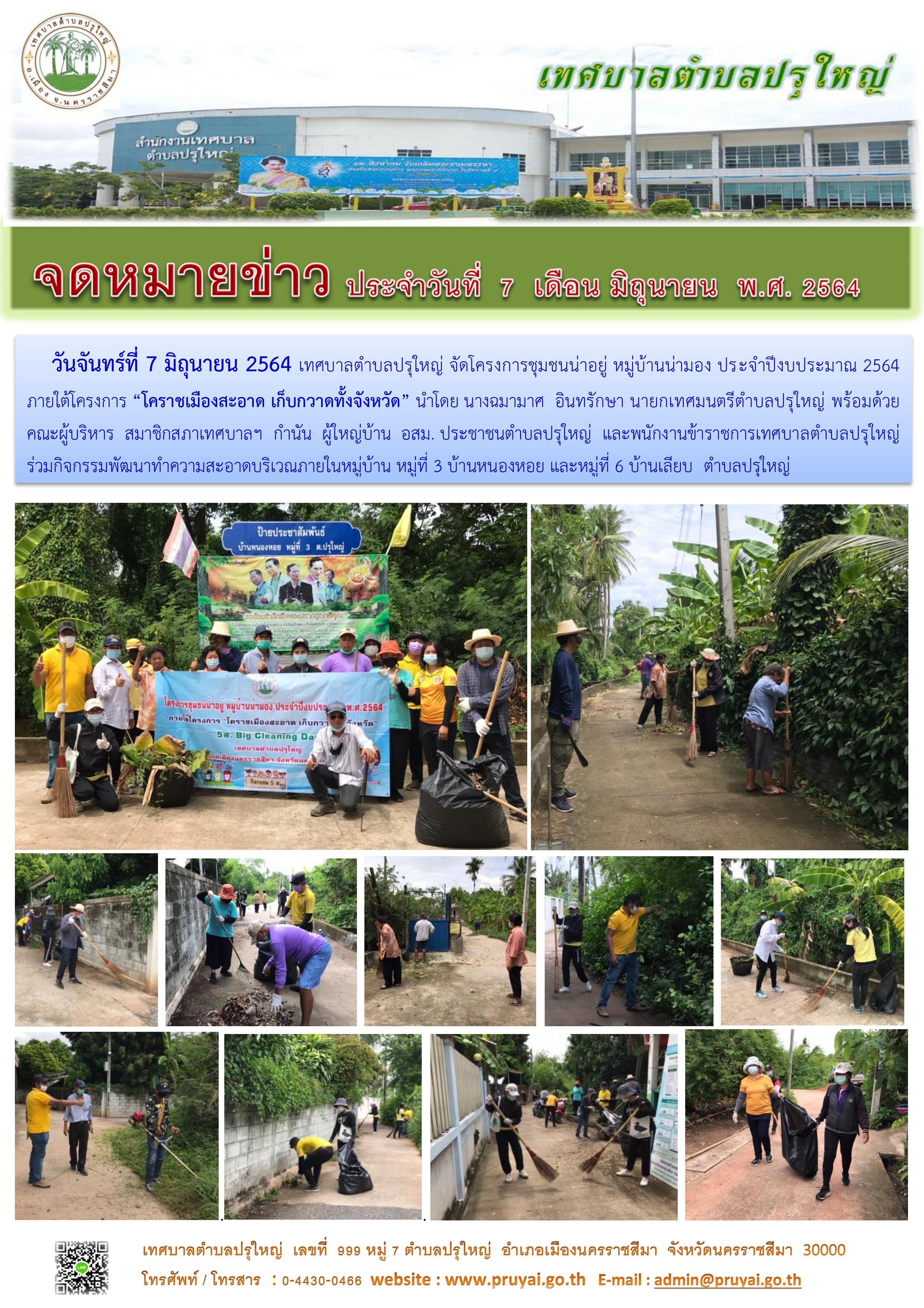 โครงการชุมชนน่าอยู่ หมู่บ้านน่ามอง หมู่ที่ 7 บ้านแสนสุข ภายใต้โครงการ "โคราชเมืองสะอาด เก็บกวาดทั้งจังหวัด" 5ส. Big Cleaning Day [1] [2] [3]