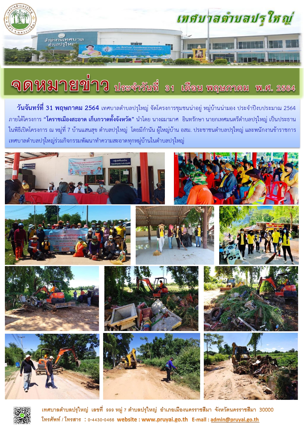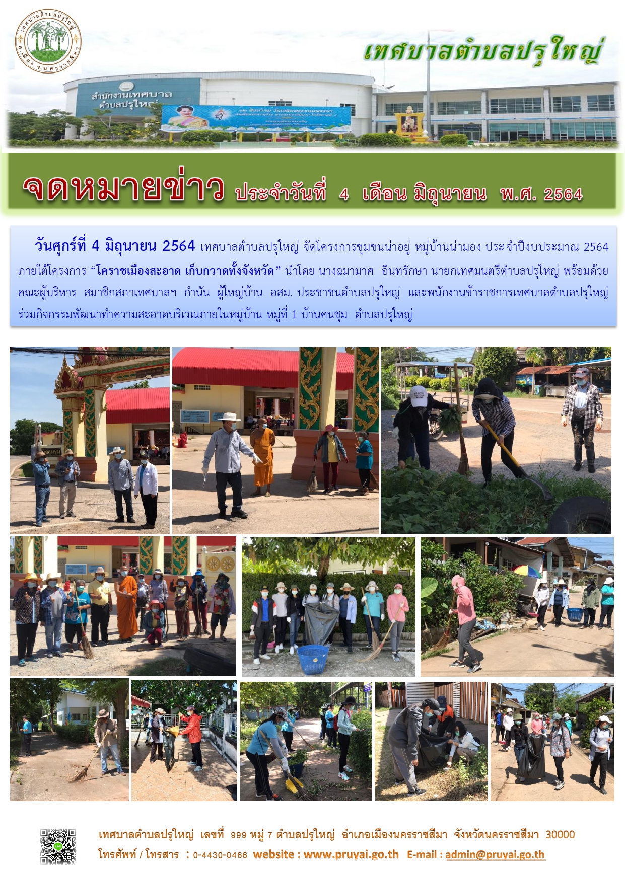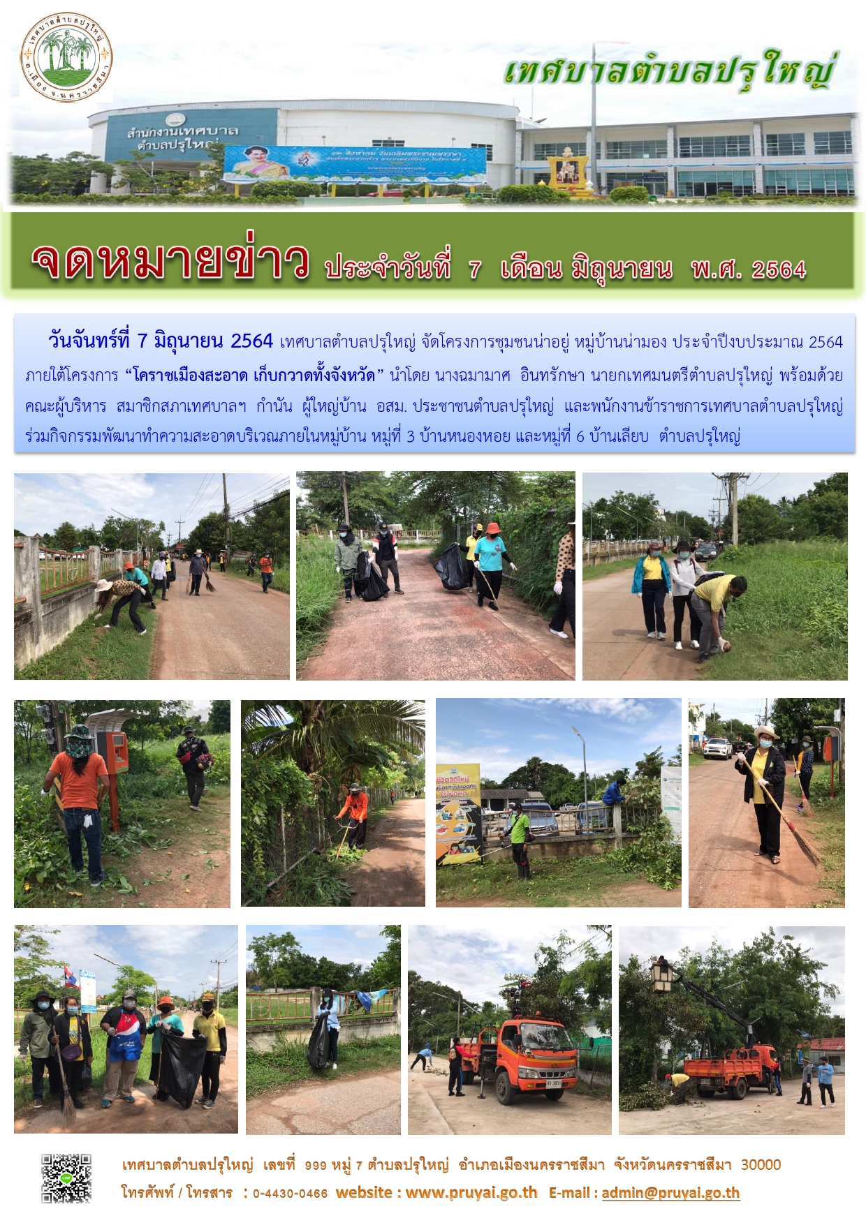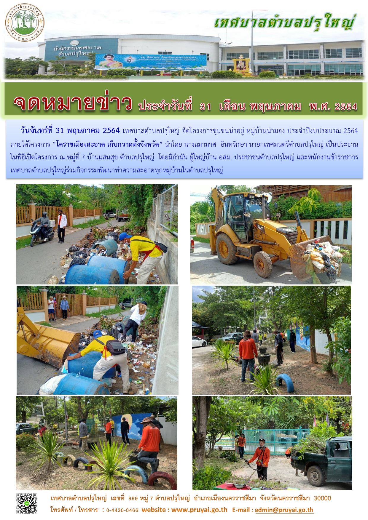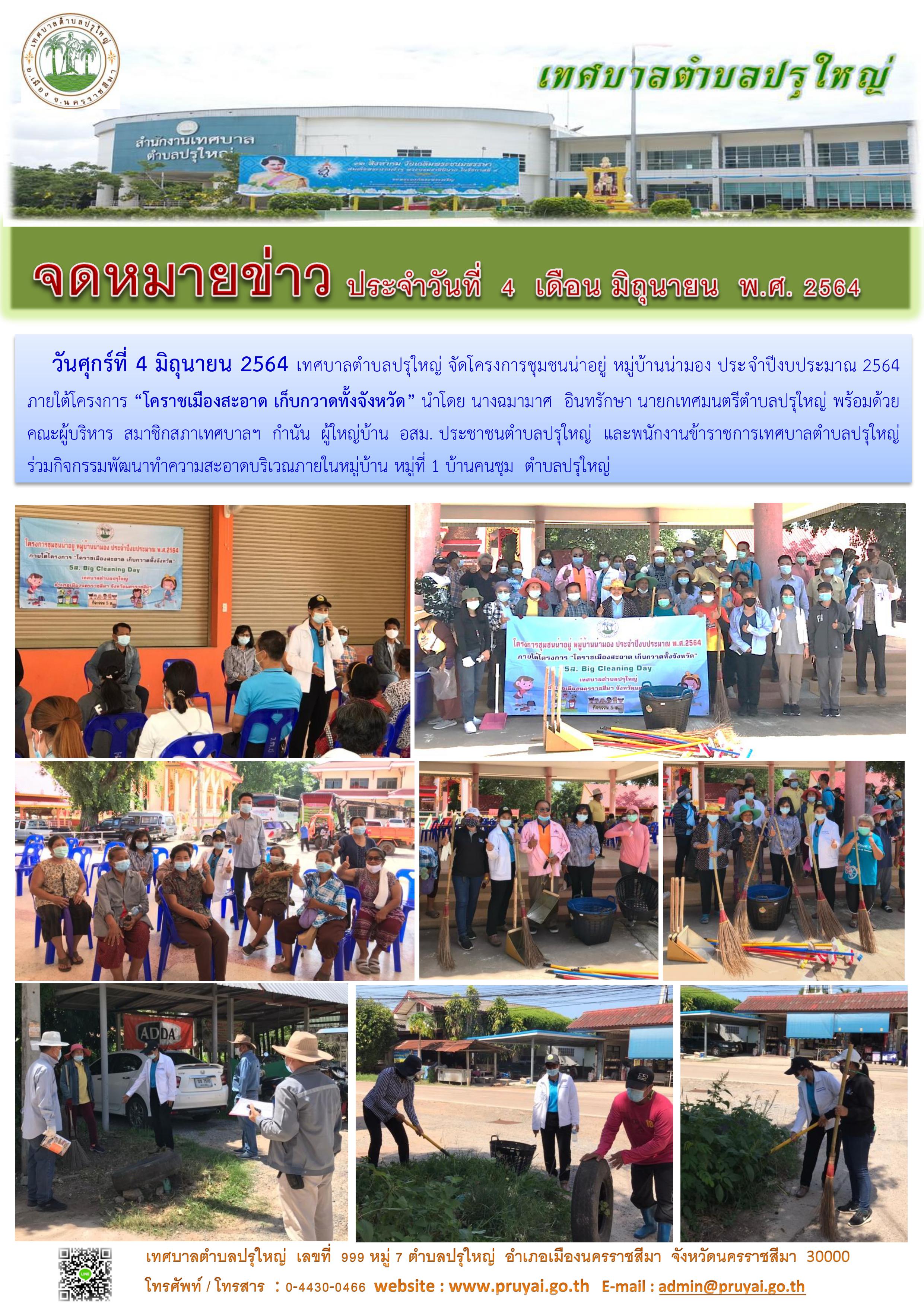 โครงการชุมชนน่าอยู่ หมู่บ้านน่ามอง หมู่ที่ 7 บ้านแสนสุข ภายใต้โครงการ "โคราชเมืองสะอาด เก็บกวาดทั้งจังหวัด" 5ส. Big Cleaning Day [1] [2] [3]